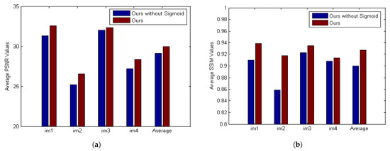 This paper evaluates the method on natural, face, text, and low-illumination images. To better evaluate the effectiveness of the sigmoid function, ablation experiments were performed. As is shown in Figure 15, Figure 16, Figure 17 and Figure 18, the images recovered using sigmoid function are more visually pleasing. Figure 19 shows that BDA-SF using sigmoid function generates intermediate results with more sharp edges. All the results demonstrate the effectiveness of the sigmoid function.