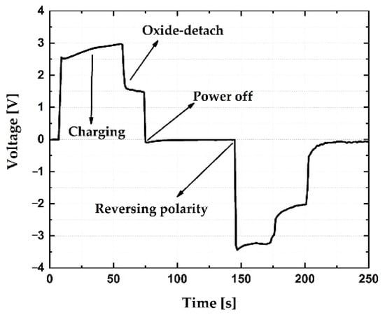 Time dependence of voltage during the electrode activation process.
