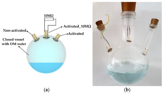 In addition to the considered electrochemical reaction, the sensor could be influenced by radiofrequency (RF) and electromagnetic (EM) interferences. These interferences may manifest as a reading offset or may result in noise and erratic readings. Additionally, the hydrovoltaic effect might come into play and increase the voltage level, apart from RF interferences [22,23]. A set of experiments was conducted in order to analyze the contribution of possible concurrent processes on the sensor’s output.