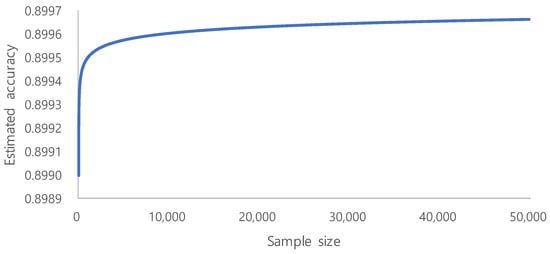 Figure 5. From the above accuracy trend, we estimate 10,000 to be the minimum required sample size, because the increase of accuracy is very small after 10,000. Sample number determination is important for model performance, especially in the context of limited labeled data [