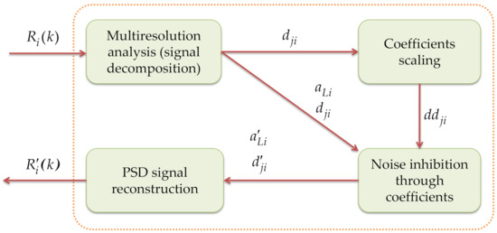 To reduce high-frequency noise, principally abrupt changes (impulsive noise), in the PSD, the values of the detail and approximation coefficients are reassigned. This task is the most important of this block of noise reduction. The flow chart that describes this submodule is shown in Figure 8.