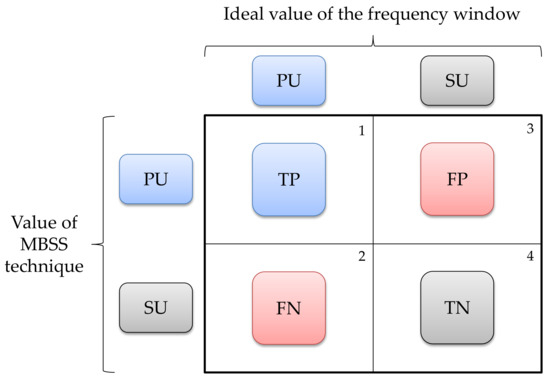 According to the literature, there were some recent and high-impact works in the field of interest related to MBSS and its implementation in a simulated or experimental environment with SDR and USRP (universal software radio peripheral) devices. The authors in [13] proposed a cooperative detection algorithm with a sub-Nyquist sampling approach to design a system with significantly reduced cost and energy consumption. In [14], the critical problem of the hidden terminal was considered (in this case, the hidden PU), and a specific spatial distribution of the SUs was proposed to counteract this problem. In [15], a compression sampling technique was proposed that can effectively reduce the cost of signal acquisition, whose principal objective is to accurately acquire the signal for detection. In [16], individual and cooperative broadband spectrum detection schemes were proposed to reduce power consumption in signal acquisition, processing, and transmission. In [17], an algorithm based on a low-speed multichannel architecture was proposed to detect frequency edges using wavelets in a multiband context for CR networks. In [18], the authors analyzed the detection capacity and developed a self-configured system with dynamic intelligence networks without causing any interference to the PU. In this work, two spectrum detection techniques were also mentioned during quantitative analysis: energy detection and band-limited white-noise detection.
