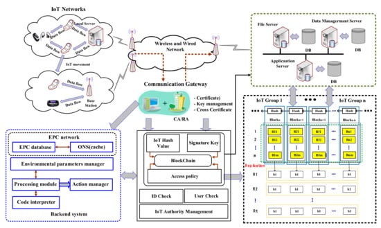 By Algorithm 1, the proposed technique groups IoT information to arbitrary sizes along with weights, and then stores IoT information and signature keys in a blockchain with access control policies. However, IoT information and computational-intensive information other than signature keys are treated with non-blockchain.