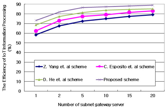 The Efficiency of IoT information processing in subnet gateway servers. Units: %.