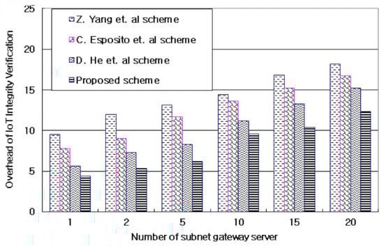 4.3.4. Overhead of IoT Integrity Validation by a Number of Subnet Gateway Servers