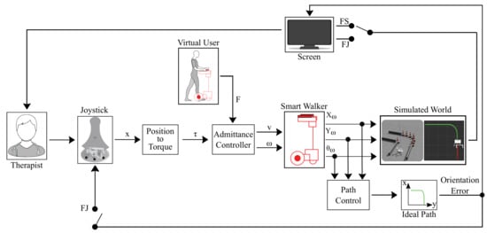- Jiménez, M.F.; Monllor, M.; Frizera, A.; Bastos, T.; Roberti, F.; Carelli, R. Admittance controller with spatial modulation for assisted locomotion using a smart walker. J. Intell. Robot. Syst. 2019, 94, 621–637. [Google Scholar] [CrossRef]