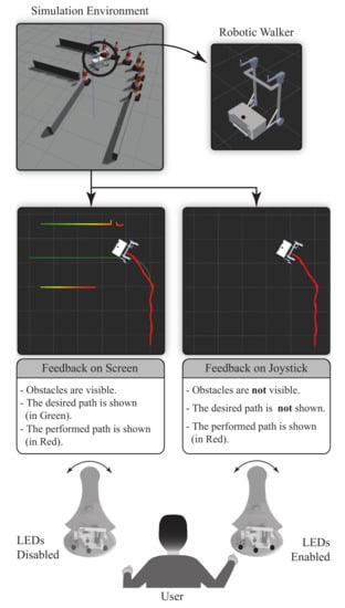 - Silva, Y.M.L.R.; Simões, W.C.S.S.; Naves, E.L.M.; Bastos Filho, T.F.; De Lucena, V.F. Teleoperation training environment for new users of electric powered wheelchairs based on multiple driving methods. IEEE Access 2018, 6, 55099–55111. [Google Scholar] [CrossRef]