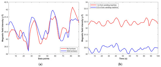 The impact of ferromagnetic materials’ proximity, (a) Influence of furniture, and (b) Vending machine [28].