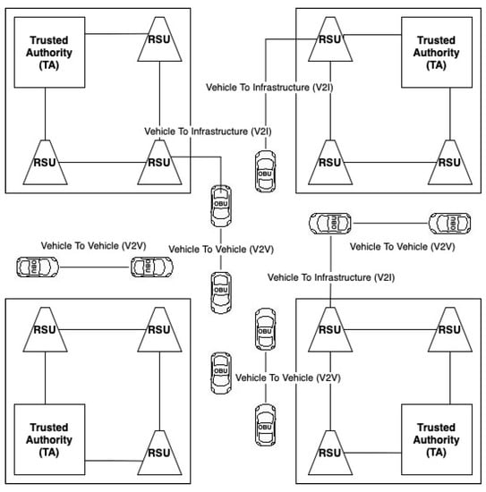 Trusted Authority—TA is strongly trusted by all network parties and has appropriate computing, networking, and storage capabilities. It also registers RSUs and vehicles, generating initial security parameters for all vehicles and RSUs after a successful connection.