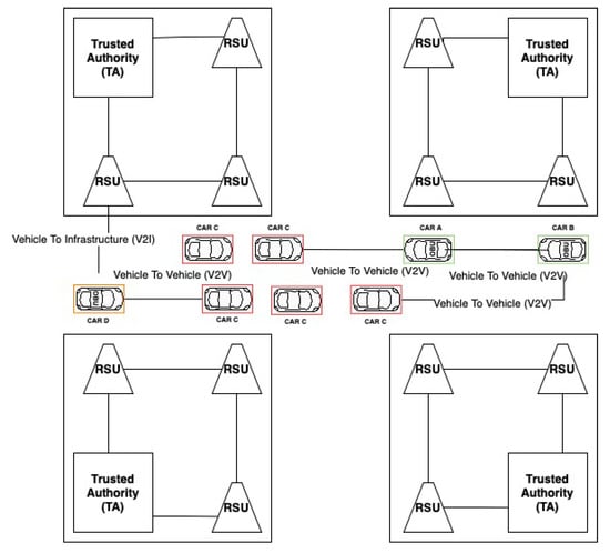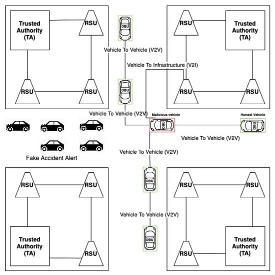 35]. Due to the increased number of vehicles, it is possible to carry out a distributed denial-of-service (DDoS) attack by overloading other neighboring units [