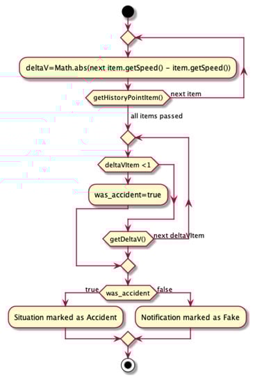 41]. Then, the system estimates whether the vehicle is sending the real information that matches the actual situation on the road. The speed information is verified against the vehicle’s position. The simulations show that this approach effectively detects false information, but requires speedy processing to avoid time-barring events [