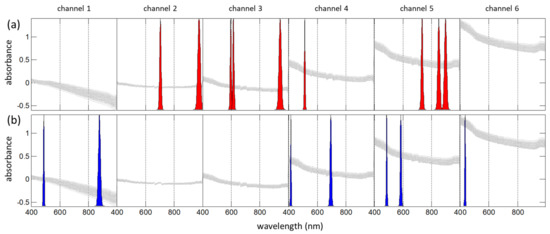 OMS specialization consists in using the required minimum of constituting spectral channels on selected application-based wavelengths, instead of hundreds of channels in a spectrometer. Traditional spectrometric channels are evenly distributed over the entire technically accessible region to provide high resolution ability and versatility of analysis. The variables in high-resolution spectra are considered monochromatic (or resolved), i.e., taking a narrow wavelength interval that does not overlap with the neighbors. This is not always the case in practice, but the channel resolution from each other is highly desirable. On the contrary, OMS channels are generally wide; they can be spaced apart or strongly overlap, so that the very term “resolution” can even be inapplicable. High spectral resolution that is important for component identification is not critical in quantitative analysis. On the contrary, the possibility of using the most informative wavelengths and spectrum regions makes it possible to avoid areas of noise and irrelevant signals. Therefore, the resolution reduction has a positive effect of eliminating and averaging the data noise and hence improves the reproducibility and accuracy of the analysis. The use of chemometrics largely compensates for the loss of resolution during the transition from the laboratory analysis to multisensor technologies [