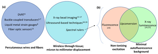 - Suckey, M.M.; Benza, D.; Arifuzzaman, M.; Millhouse, P.W.; Anderson, D.; Heath, J.; Des Jardins, J.D.; Anker, J.N. Luminescent Spectral Rulers for Noninvasive Displacement Measurement through Tissue. ACS Sens. 2020, 5, 711–718. [Google Scholar] [CrossRef] [PubMed]