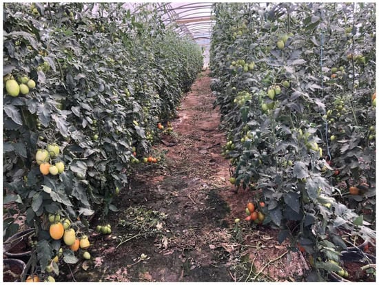Tomatoes, grown in different crop systems, are the world’s second-most harvested vegetable and the leader among greenhouse vegetables []. In the last few decades, greenhouse tomato cultivation in several systems has increased worldwide because it has the advantage of enabling high productivity and stable supply throughout the year.