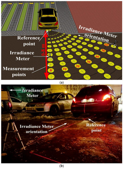- Memedi, A.; Tsai, H.; Dressler, F. Impact of Realistic Light Radiation Pattern on Vehicular Visible Light Communication. In Proceedings of the GLOBECOM 2017—2017 IEEE Global Communications Conference, Singapore, 4–8 December 2017; pp. 1–6. [Google Scholar] [CrossRef]