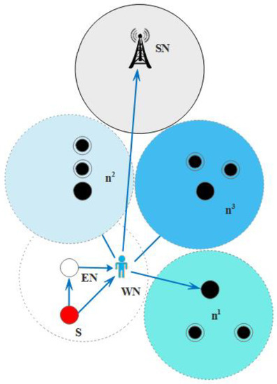 where ‘Sn*’ is the closest optimized sink in which the total number of nodes with the difference of empty regions that selects for data delivery as in Equation (3):