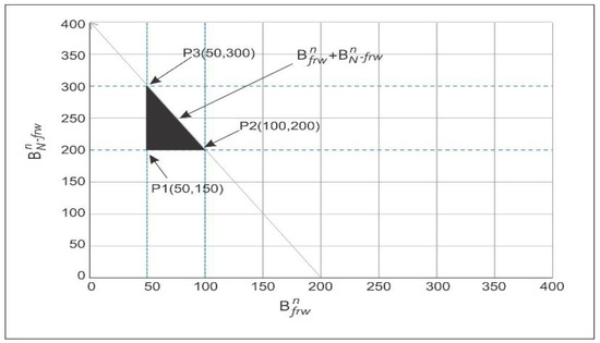The boundary of the feasible region can be plotted in Figure 10 from the above equations: