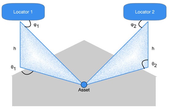 A transmitting resource’s three-dimensional position can be calculated by estimating the signals’ AoA in two fixed locators. If the locators’ absolute coordinates are known, it is also possible to calculate the absolute coordinates of the resource it transmits.
