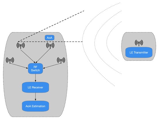 The receiver antenna acquires IQ samples concerning the signal packets and reroutes them to the positioning system. The latter practices the obtained values to ascertain the angle of the collected signals. Consequently, the place of the transmitter is estimated. It is reasonable to perceive that this practice is suitable for indoor positioning applications. In these situations, a fixed reference point represents the transmitter, and, for instance, the receiver could be the consumer’s mobile device. It must be stated that, to propose a possible commercial solution for radiogoniometry, AoA is suitable for traceability of resources. In this circumstance, the transmitter is a movable component, for instance, a mere tag. At the same time, the locators, i.e., the receivers, are established points. Therefore, the specifications present in [25] outline possible advantages; for instance, the tag must transmit BLE 5.1 data utilizing an individual antenna (instead of an array). Furthermore, it is not necessary to perform computationally intensive algorithms to determine the position of the transmitter.