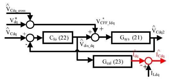 Figure 2 (bottom-left) denotes the proposed capacitor voltage observer. Assuming that the inverter deadtime is negligible, the inverter voltage commands can contribute to both the capacitor voltages VCdq and inductor voltages VLdq. Under this effect, the dynamic model of capacitor voltage is illustrated by