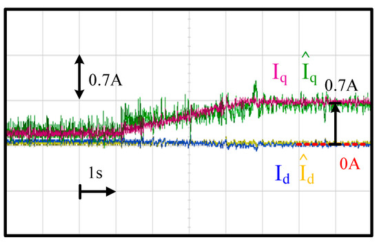More importantly, was close to Idq irrespective of the machine speed and current magnitude. As seen in Figure 12, q-axis current estimation error was around 2.56% at 6 krpm. This increased to 4.54% as the speed increased to 42 krpm. In contrast, the d-axis current estimation error was negligible for the speeds between 6 krpm and 42 krpm. As a result, the proposed current observer was also able to estimate accurately at different speeds once the current magnitude was higher than a certain value.