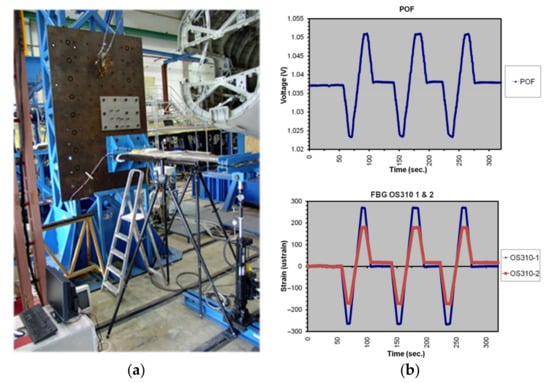 - Gomez, J.; Zubia, J.; Aranguren, G.; Arrue, J.; Poisel, H.; Saez, I. Comparing polymer optical fiber, fiber Bragg grating, and traditional strain gauge for aircraft structural health monitoring. Appl. Opt. 2009, 48, 1436–1443. [Google Scholar] [CrossRef]