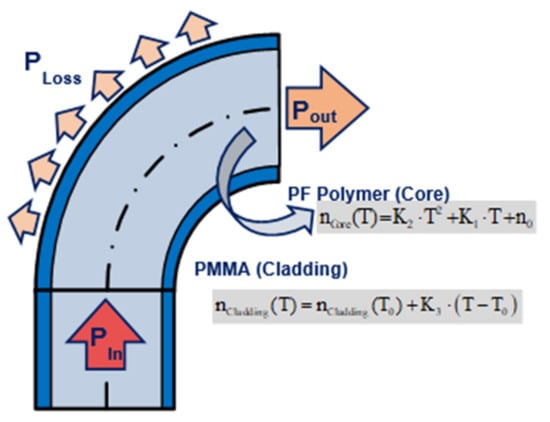 On the other hand, if high tensile stress is applied to the POF sensor, small temperature increments can appear. The characterization of different SI-POF samples [] shows temperature variations <0.5 °C in the elastic regime and variations >3 °C in the plastic regime [].