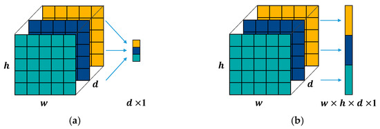 Global average pooling (GAP) and flatten layer: (a) GAP layer and (b) flatten layer.