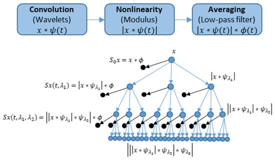 Wavelet scattering transform processes [60] (top) and wavelet scattering network [61] (bottom).