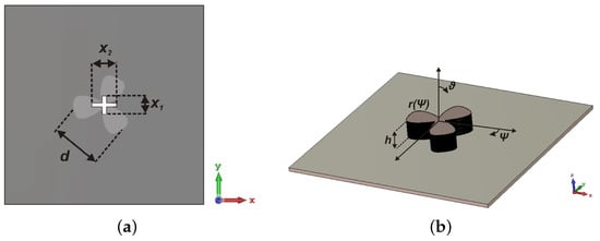 The geometry of the proposed DRA unit element for the array is depicted in Figure 2. It consists of a flower-shaped DRA placed on a ground plane. Rogers RO3006 laminate of thickness 0.254 mm and relative permittivity 6.15 is used as the ground plane. The 50 transmission line is etched on the bottom of ground plane laminate and a cross-shaped slot is etched on the top. The slot couples RF energy to the flower-shaped DRA. The structure of DRA is inspired by superformula, derived by Johan Gielis [20,21]. By varying the parameters of superformula, a wide variety of abstract and natural shapes known as supershapes, could be created. The base profile of the proposed DRA is defined by the polar function