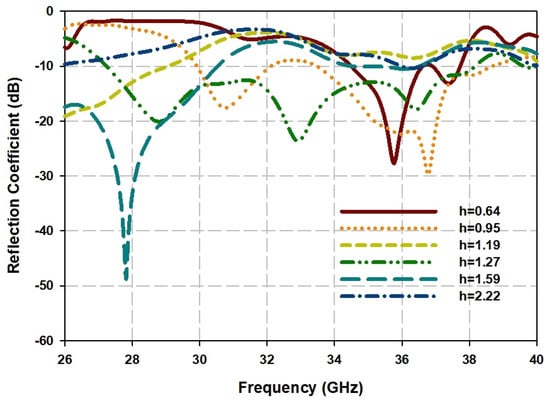 Simulated reflection coefficients of DRA array for different value of DRA height.