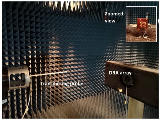 Measurement setup for the far-field measurement of DRA array as receiver and probe as transmitter.