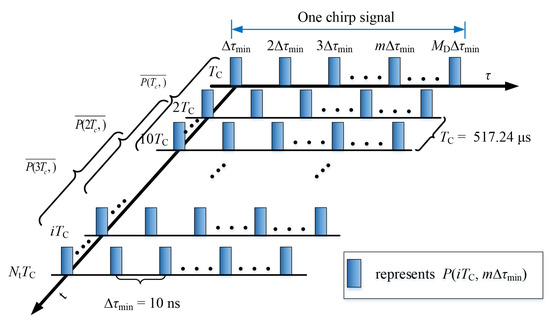The instantaneous PDP is used to acquire the LRS. For the discrete CIR, it is expressed as h i T C , m Δ τ min , and the discrete instantaneous PDP (IPDP) can be derived as shown in Equation (2).