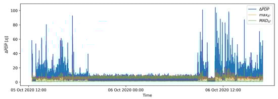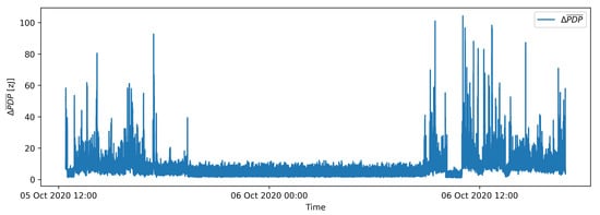 Time series of PDP differences for a 30-h long recording in a pilot environment.