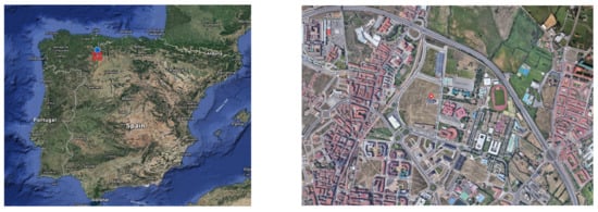 Localization of León (Spain) and the lidar position in an urban area within the campus of the Universidad de León.