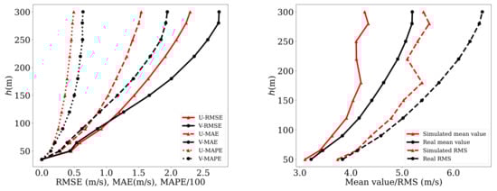 where is the actual variable (u, v, or ) and is the simulated value. n is the number of samples. As characteristic wind speed, it is defined the root mean square (RMS) as: