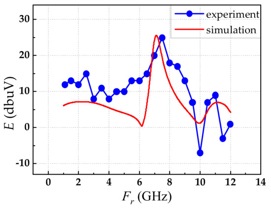 The simulation and experiment results of the frequency responses are shown in Figure 10. The measured resonance frequency of 7.5 GHz was approximately equal to the simulated resonance frequency of 7.12 GHz. In addition, the variation tendencies of the experimental results and the simulation results were nearly consistent.
