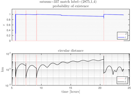 - Hussein, I.I.; Roscoe, C.W.; Wilkins, M.P.; Schumacher, P.W., Jr. Probabilistic admissibility in angles-only initial orbit determination. In Proceedings of the 24th International Symposium on Space Flight Dynamics, Maui, HI, USA, 5–9 May 2014; pp. 5–9. [Google Scholar]