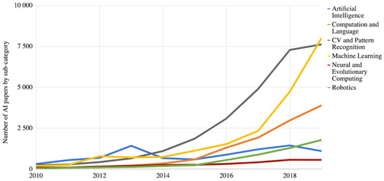 Number of AI papers on arXiv, 2010–2019 [22].