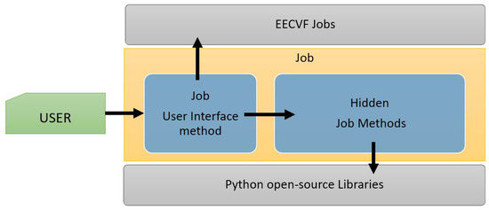 Every offers a public method exposed to the user which can be configured via parameters. This method handles the necessary changes in the system configuration and triggers other necessary from one or several blocks, depending on the nature of the . As we can see in Figure 5, besides the method for user interface, a job can have multiple private methods that handle the functionality, with or without external python libraries.