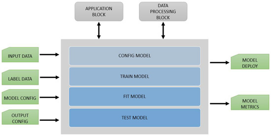 The framework is following a Facade design principle; the acts as a Facade to the entire application. Facade principle states that a complex subsystem should provide an interface which limits interactions with lower layers of architecture, offering a simple channel of communications between user and software functionality [42]. In the proposed framework, the user is not required to interact with the second layer (, , , or ) in order to use the application. Every or provides a method with the scope of abstracting from the user the necessary sub-system actions needed in a block for execution.