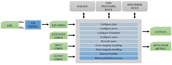 The handles the CV pipeline in the framework. This block configures the actual order of execution for all triggered and that the user describes in the attempt to simulate a use case. The internal design of the is presented in Figure 7. To set up a pipeline, users need to configure with input and output , with the input data (images, videos, or any vector data format) and with the for the pipeline.