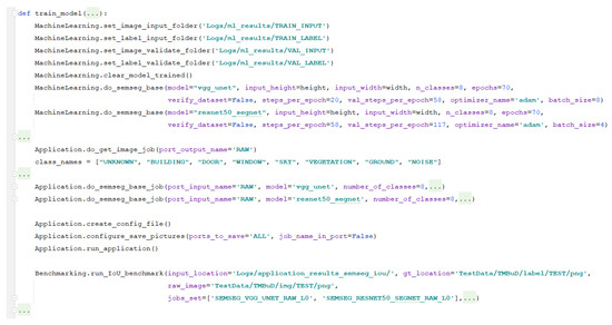 In this block, users can find that will trigger ML semantic segmentation models or edge detection models that can be trained according to desired pipeline needs. from this block respect the principle presented in Section 3.1, and so the user can easily configure the training using method parameters.