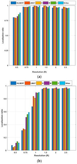 - In general, for the APT method, the H-curve model is the best performing model, but the proposed NHexCurves model is superior to other models, especially at low resolutions. For this localization method, the Z-curve model has generally been the worst performing model.