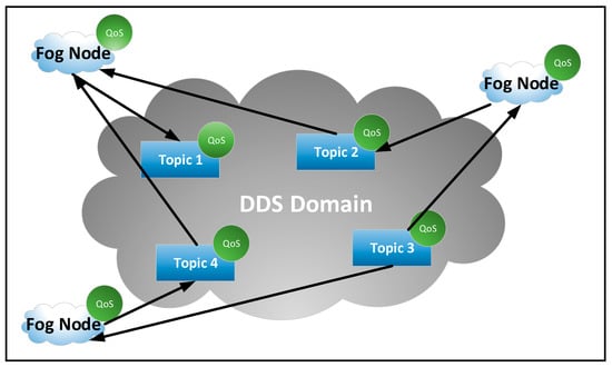 An example of interconnections between fog nodes via data distribution service (DDS) middleware.