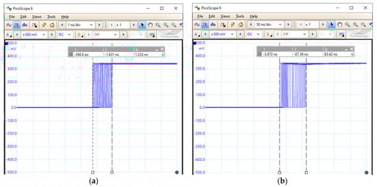 The fieldbus driver for CANOpen operates as a master device within a CanOpen fieldbus, implementing the CANOpen Master Protocol Stack. One of the services you need to provide is to generate the Sync signal. It generates the sync message depending on the communication cycle period. For real time systems, it is important that this jitter is as small as possible. As can be seen in Figure 7, for the implementation of a cycle period of 400 ms on ARM Cortex A53 cores with Linux as the operating system, the SYNC is generated with a jitter of about 83 ns, and for the implementation on an ARM Cortex R5 core with FreeRTOS as the operating system, a jitter is obtained of approx. 1.233 ns. In order to obtain on the oscilloscope the graphics from Figure 7, the SYNC signal was configured to be generated every 100 ms, and before generating the SYNC signal, the line port that is connected to the oscilloscope probe is switched from 0 logic to 1 logic (which is switched back to 0 logic at the middle of the 100 ms period so that it can be prepared for the next generation of the SYNC signal). By setting the oscilloscope trigger on the rising edge, the images shown in Figure 7 are generated.