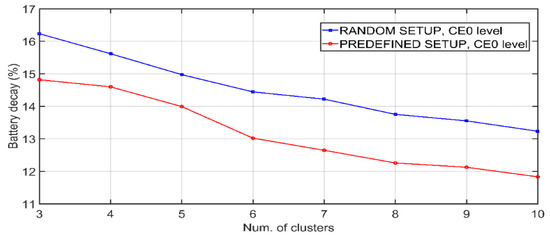 Expression (1) reflects that, in the case that the network population was the maximum allowed, the clusters would be balanced. Note that parameter strongly influences the efficiency of the cluster formation and information forwarding algorithm, as it is affected by the size of the network [66]. and determine the degree of reutilization of the LR-WPAN hardware and they depend on the type of IoT application for which the combined network is designed. They are metrics that allow the comparison of different combined networks in terms of deployment. One of the advantages of the proposed combined network is the ease of its deployment. In principle, only the new CH nodes need to be added to the existing network, and its number is clearly small when compared to the total number of nodes. For the number and location of these CHs, different approaches can be carried out (e.g., they could replace the routers of the old network). A more sophisticated approach would consist in the selection of new, optimized locations by using network planification; this optimization would take into account the location of the network nodes, the type of traffic and the LPWAN coverage, in order to balance the communication burden between the CHs and extend battery lifetime. This will be the topic of future research.