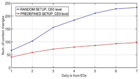 Repetitions are one of the two mechanisms used in LTE and NB-IoT to improve the probability of a correct reception of messages [57]. It involves repeating transmitted symbols a previously established number of times, so that the signal-to-noise ratio (SNR) at the receiver may be increased. Devices with poor connectivity, i.e., those that measure a low received reference signal power (RSRP), benefit from a high number of repetitions more than others. NB-IoT defines three coverage enhancement (CE) levels by repetitions: CE0, CE1 and CE2. The latter provides a link budget of 164 dB, up to 20 dB more than in legacy LTE. It is intended for distant or indoor located devices. Detailed descriptions of the repetitions mechanism in RA phase can be found in [58,59].