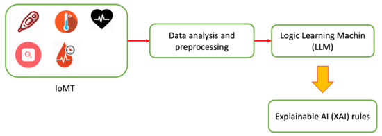 Today, more than ever, due to population aging, the increasing burden of chronic conditions and multimorbidity in older adults, and the COVID-19 pandemic, the healthcare systems need to be dramatically innovated, especially by the introduction of technologies that may enable organized and decentralized management of patients, particularly of those who need continuous follow up due to their chronic conditions (e.g., [23,24]). Recently, we have witnessed a rapid evolution in the fields of the Internet of Medical Things (IoMT), data processing and fusion, and telemedicine [25]. The field of IoMT has opened new opportunities for patient monitoring and remote service provision, particularly in older adults with chronic diseases [26,27]. However, the rise of the IoMT has also brought new challenges in terms of, for example, privacy, security, and computing capabilities [28]. Nonetheless, the current availability of multi-sensors systems natively integrated with AI is scarce. Currently available telemedicine systems are capable of sensing and communication through a data hub, but they typically have limited processing capabilities (e.g., detection of parameters exceeding desired ranges to deliver alerts) [29]. These simplified, one-size-fits-all alert systems may not be able to effectively support physicians in monitoring their patients as specific patients may have specific ‘desired’ ranges for their biomarkers, and physicians can obtain a limited insight into the patient status. There is an urgent need for novel, intelligent systems able to monitor patients in an individualized way. The integration of AI algorithms, specifically explainable AI (xAI) methods that are able to generate predictive models of the patient’s health, can introduce a revolution in this field [30,31]. The generation of models in the form of intelligible rules (if-then-else) can help physicians understand the factors leading to better/worse outcomes in their patients and, also, can help identify countermeasures to limit the risk of deterioration by modifying specific biomarkers, as identified by the model rules, to lead them within the desired limits. This type of approach not only enables a deeper understanding of the factors that determine the evolution of the patient status but it also enables the identification of specific countermeasures and therapeutic approaches on an individual basis.