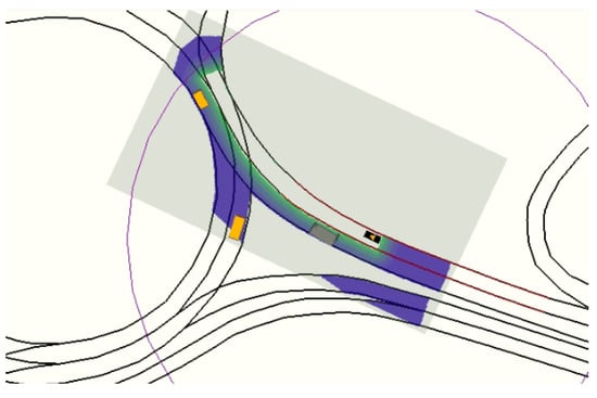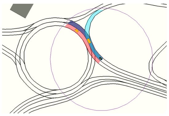 Once is created, the next task is to select the best corridor . This calculation is performed using Toledo’s lane-changing model [], which assigns a utility level and evaluates the gap acceptance for each corridor. The chosen corridor is the one with the greatest utility that has an acceptable gap.